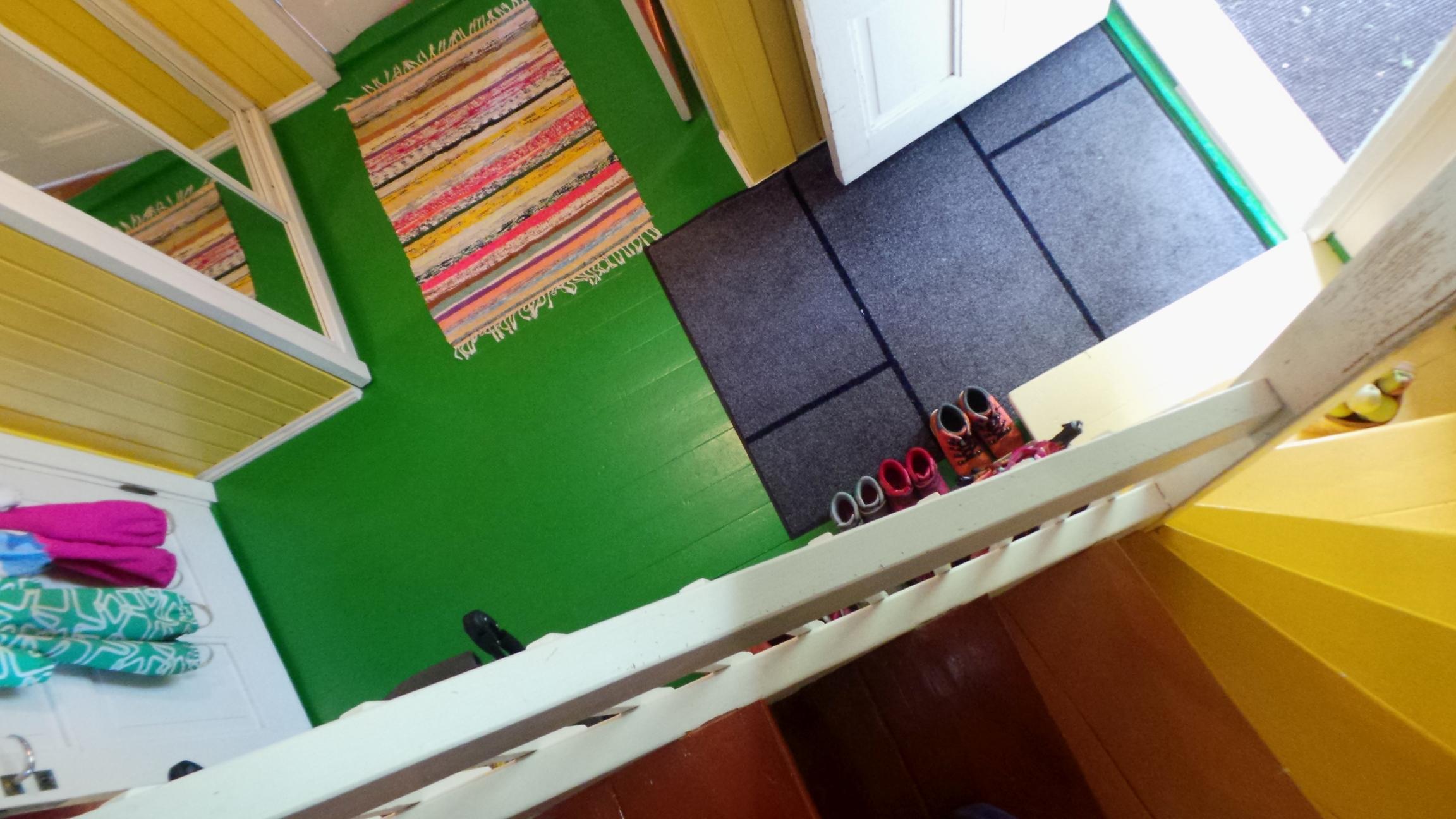 Silloin Suomeen palattua keväällä yritin jo googlailla värikkäitä (ja noihin väreihin sopivia) eteisen kuramattoja, mutta ilmeisesti jossain on joku kirjoittamaton sääntö, että kuramaton pitää olla harmaa, graafinen ja ruma. Kalliilla toki saa vaikka minkälaisia upeita itämaisia ei-vesipesua-mattoja, mutta tähän tarvitsisi sellaisen lapsiperheen kurakulutusta kestävän ja edullisen. (sellaista Ikea-hintatasoa) Vinkit värikkäistä kuramatoista erittäin tervetulleita!