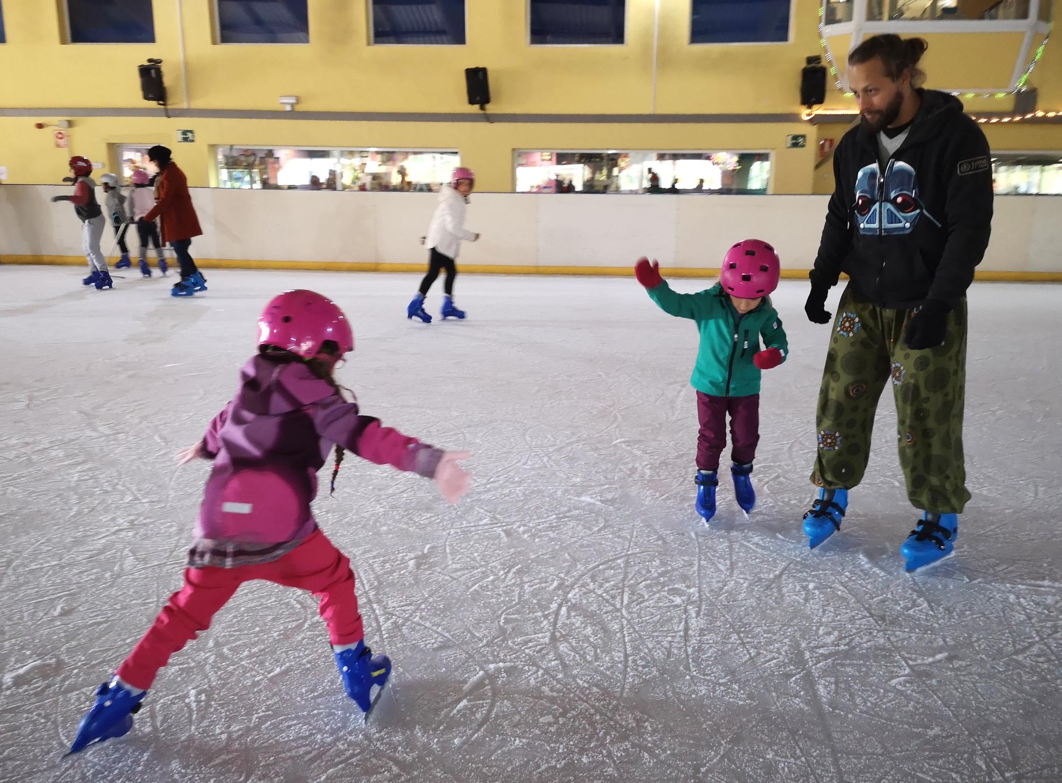 Oon ihan huippuiloinen, että vaikka me ollaankin täällä palmujen alla talvia, myös täällä on näin hyvä mahdollisuus opetella luistelemaan. Aiempina talvina ollaan saatu aikaiseksi käydä tuolla vain kerran talvessa (vaikka aikomus on ollut enemmän), toivottavasti tämän talven aikana käydään muutamia kertoja lisää. Niin ne taidot kasvaa ja hioutuu!