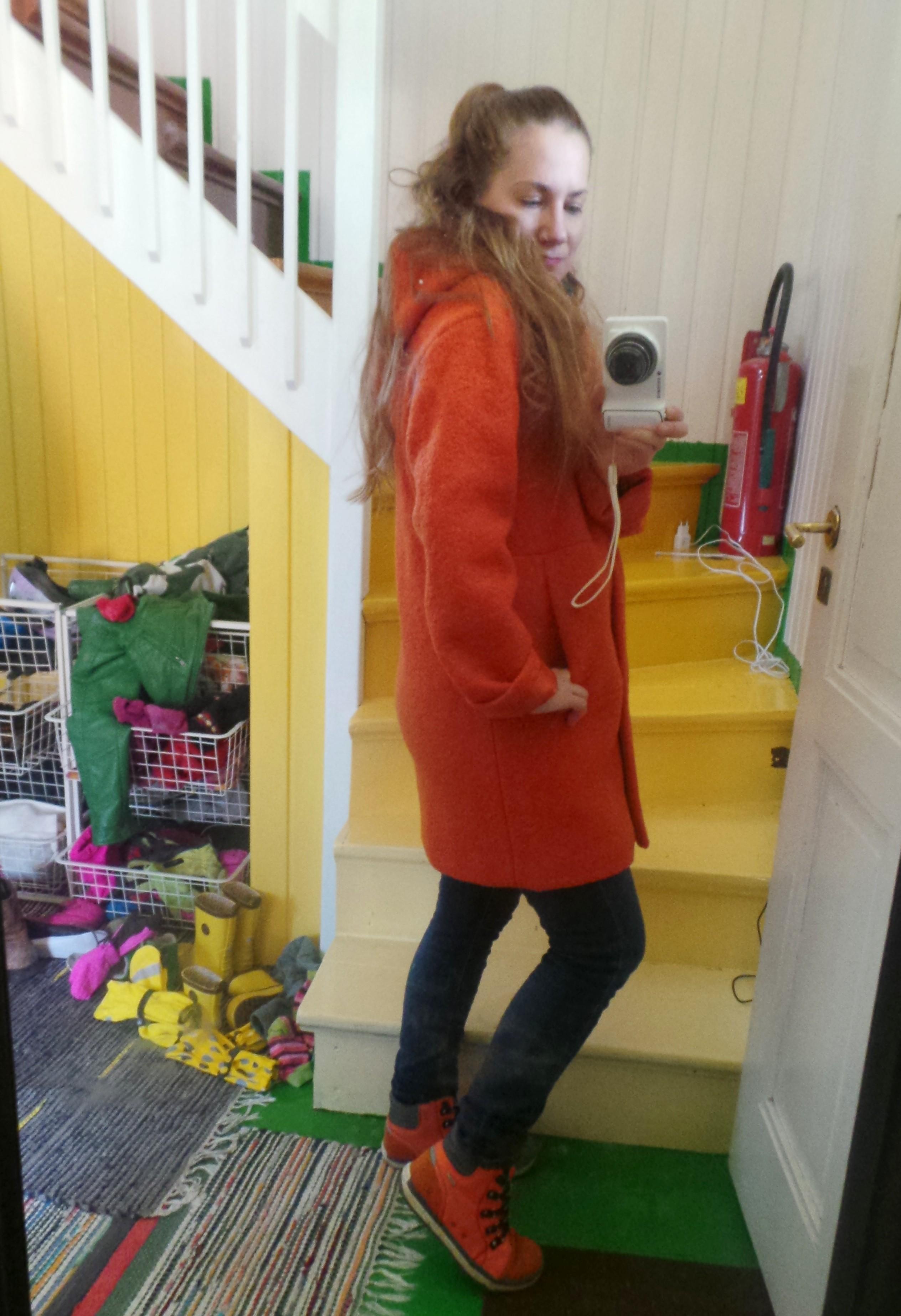 Tarinan tausta: joskus kevättalvella olin surrut, että reilut kymmenen vuotta palvellut lempparikevättakkini (oranssi lyhyt villakangastakki, näkyy mm. täällä) on totaaliromahdustilassa. Vuori on ollut säpäleinä jo vuosikausia, ja nyt sitten toinen kainalokin on ratkennut niin, että hihasta on jo melkein neljäsosa irti. Olin ajatellut (ja ajattelen vieläkin) ensi syksyä varten korjauttaa sen Katariinalla.