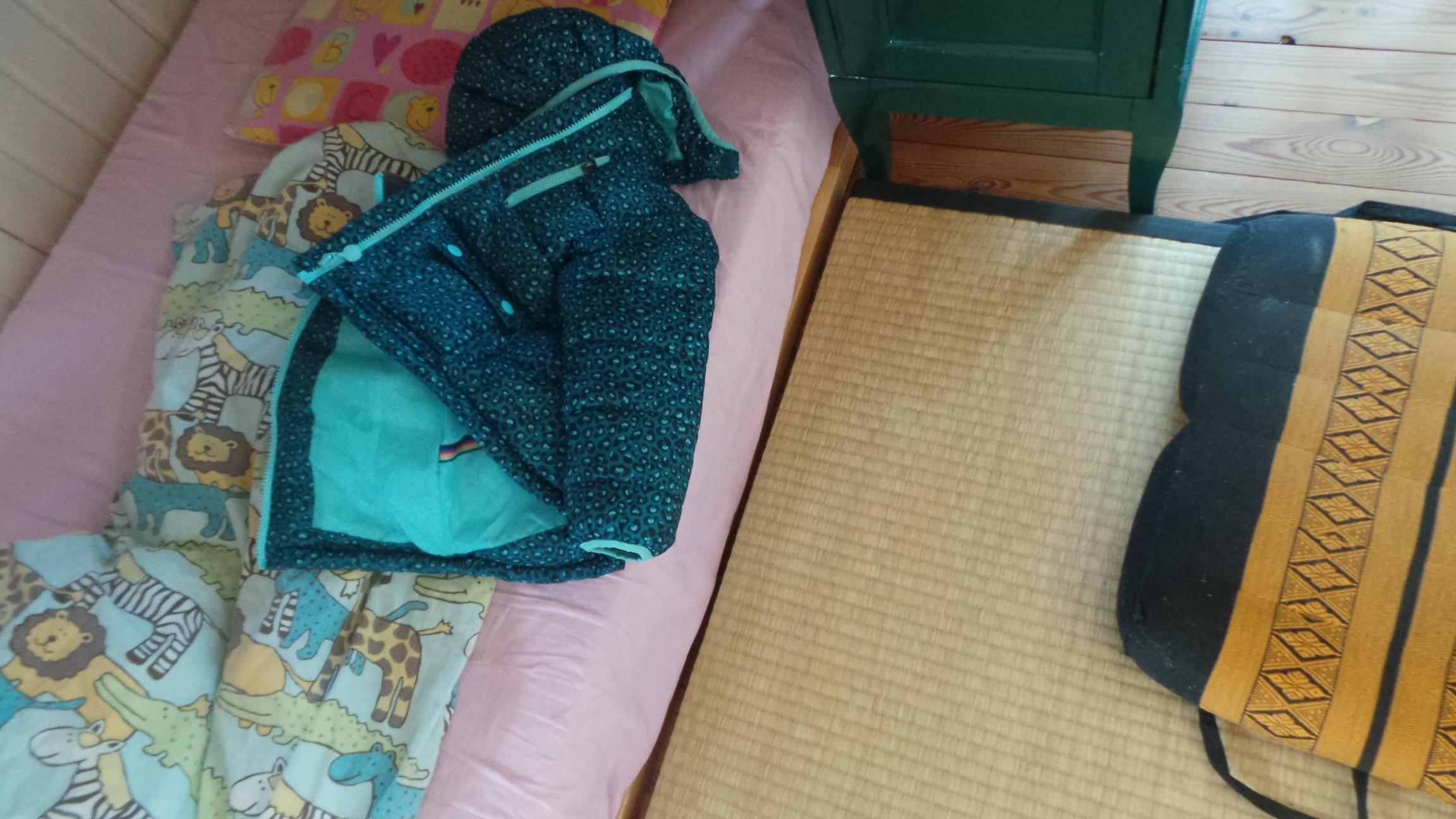 Perheen 3-vuotias meni eilen illalla nukkumaan untuvatakki päällään.