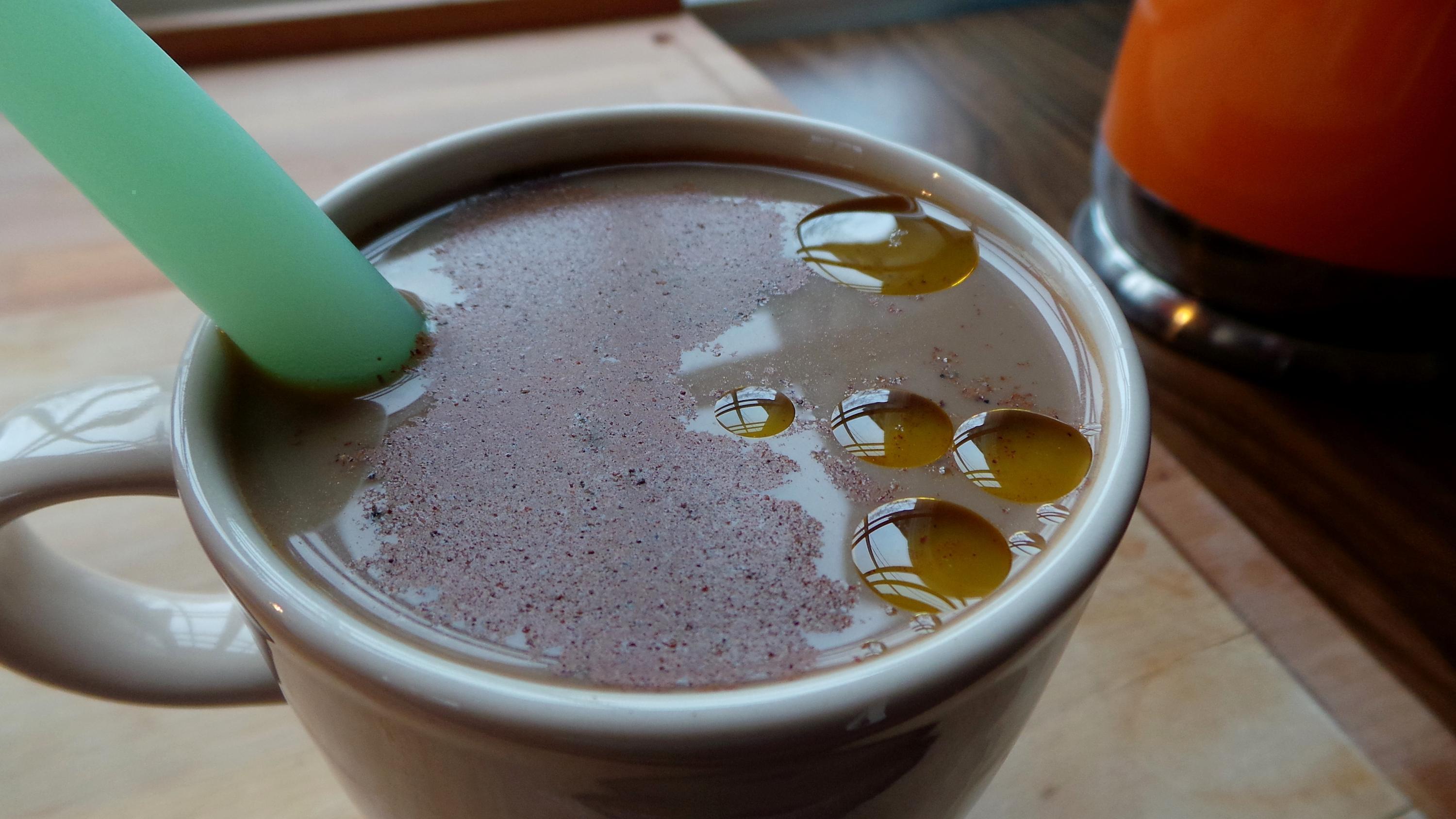 PSS. Jos kahviin laittaa väsymysepähuomiossa valkosipuliöljyä, se näyttää tältä:
